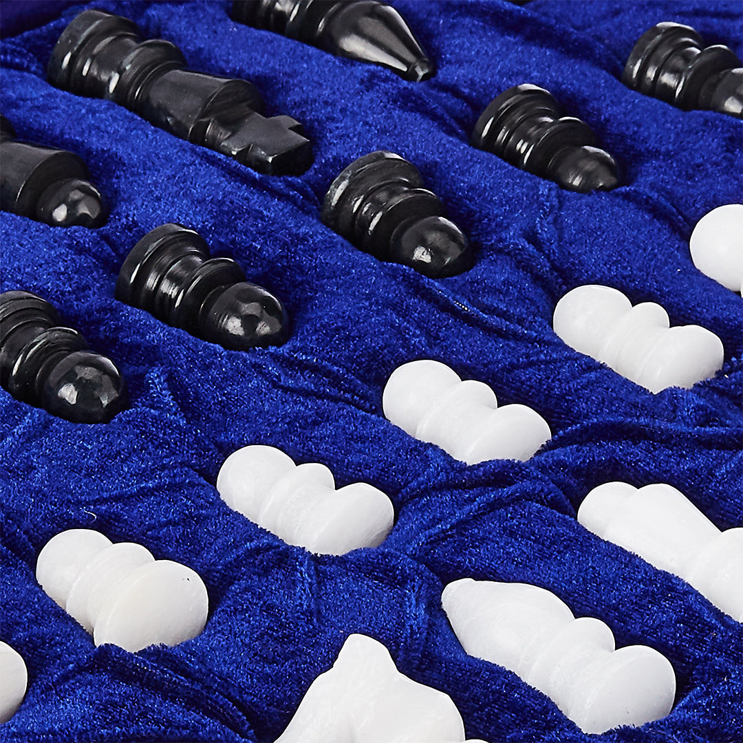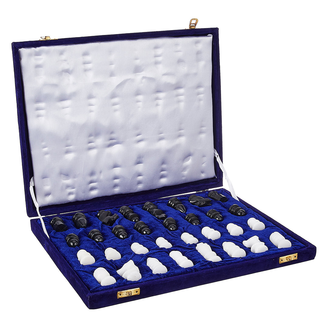 Alabaster Chess Pieces Set (32) | White & Black Stone Chessmen in Velvet Presentation Case – The Sangemarmar