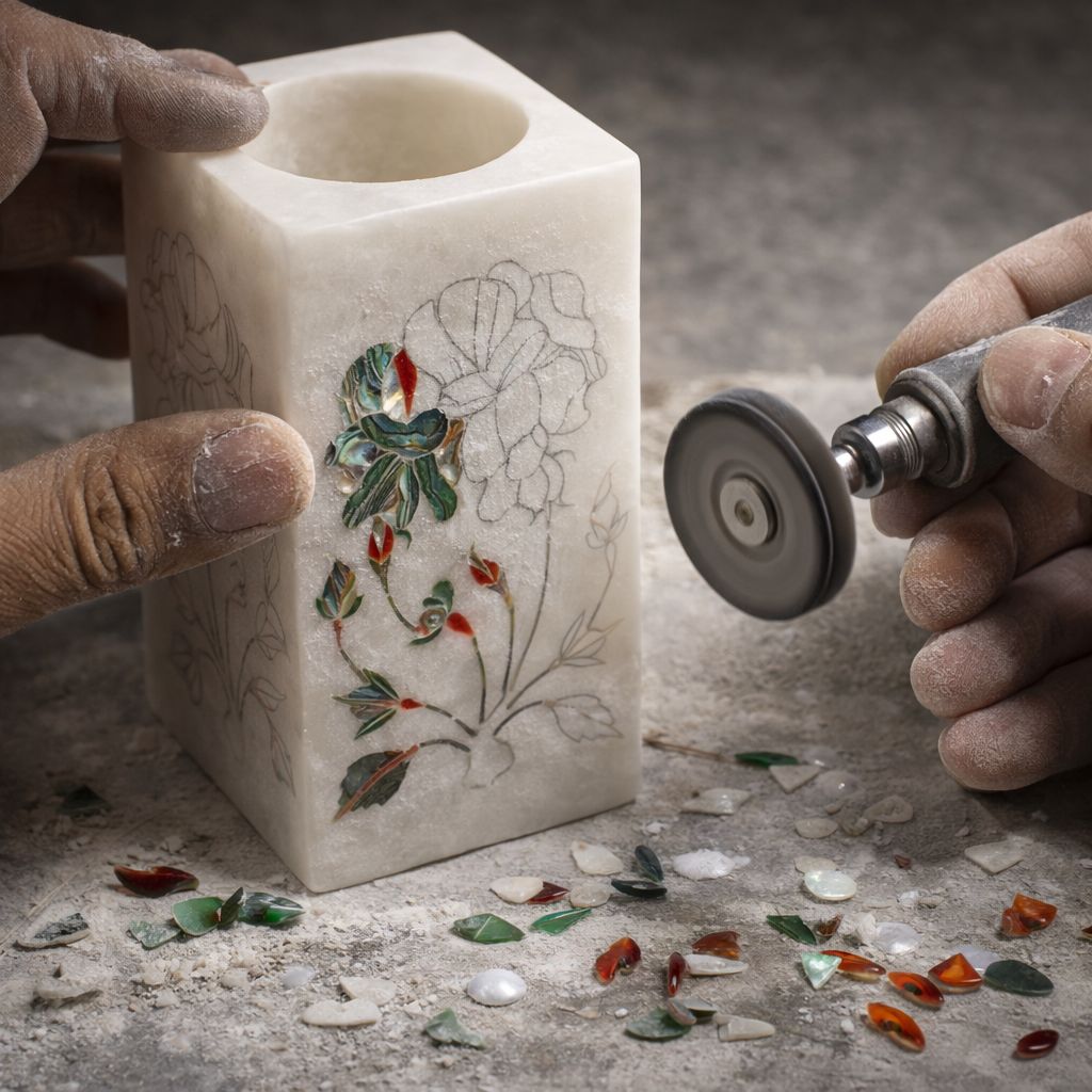 Technique: Traditional pietra dura (stone inlay) craftsmanship