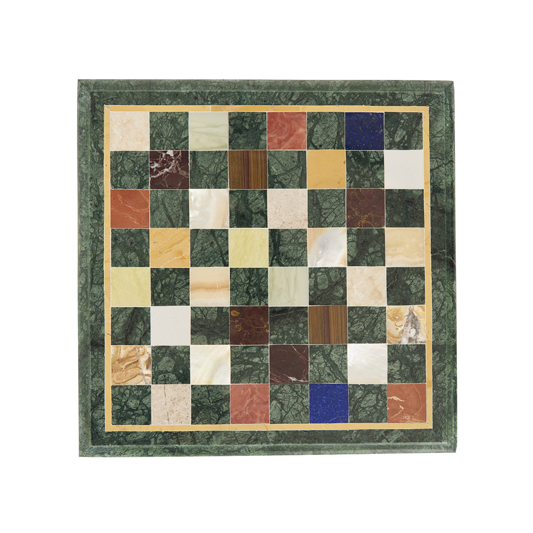The Sangemarmar Green Marble Chess Set is crafted from natural green marble and finished with multi semi-precious stone inlay checks, creating a board that feels rare, vibrant, and unmistakably premium. The inlay work adds richness and detail that you simply don’t see in everyday chess boards—each square holds natural variation, depth, and a quiet brilliance.