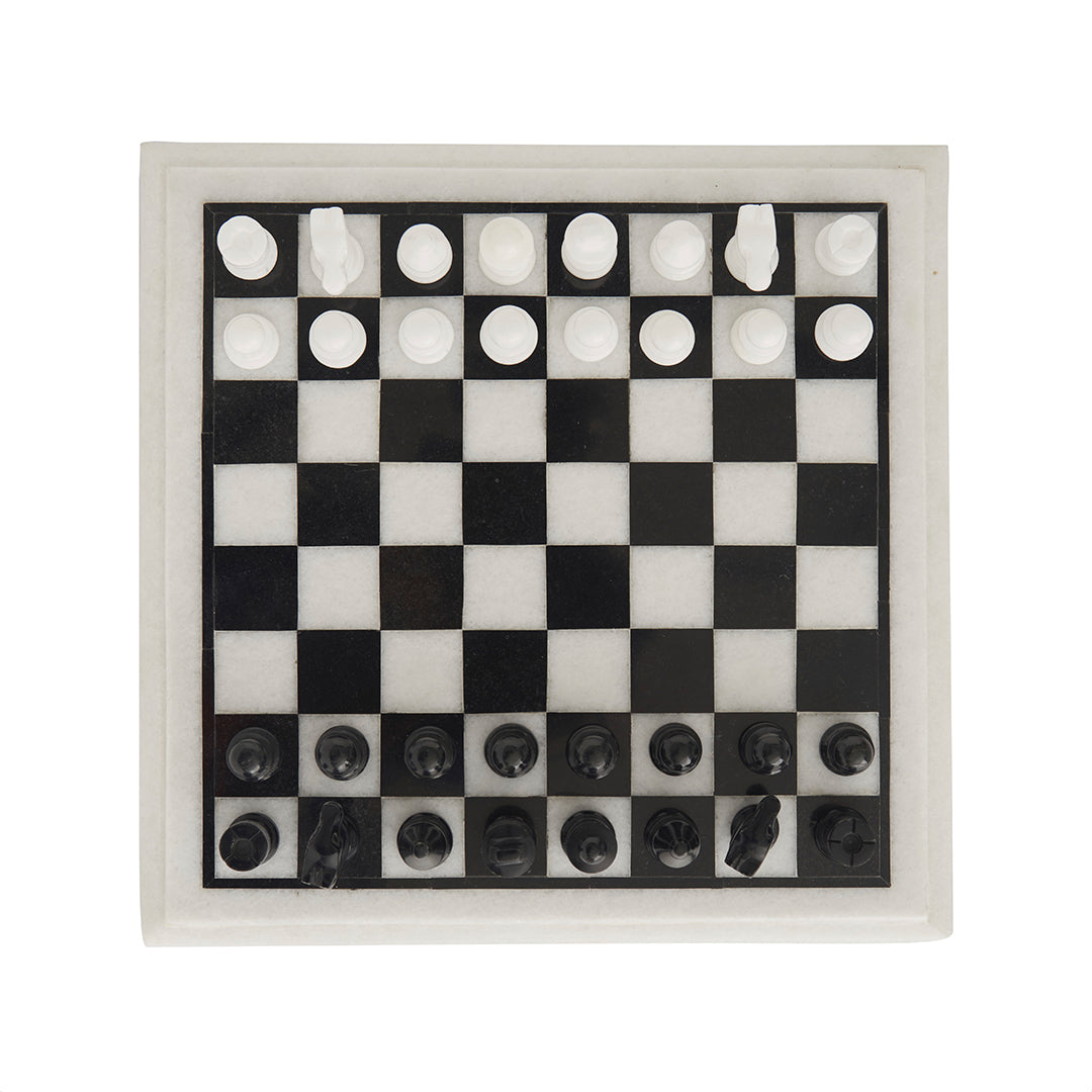 Bring classic elegance into your space with this White Marble Chess Set with Board, handcrafted from natural stone for those who value luxury, detail, and design. Made with a smooth white marble base and sharp black marble inlay squares, this chess set delivers a clean, high-contrast aesthetic that feels refined in every setting.