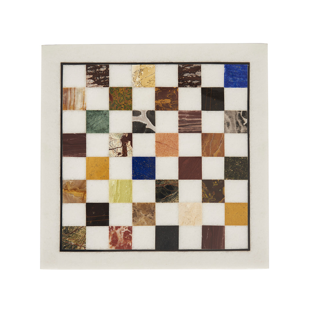 The Sangemarmar White Marble Chess Set is carved from luminous natural marble and finished with multi semi-precious stone inlay checks—a level of stonework normally reserved for heirloom décor. The checks aren’t printed, painted, or laminated. They’re cut, placed, and set into the surface, giving the board a richness that looks different at every angle.