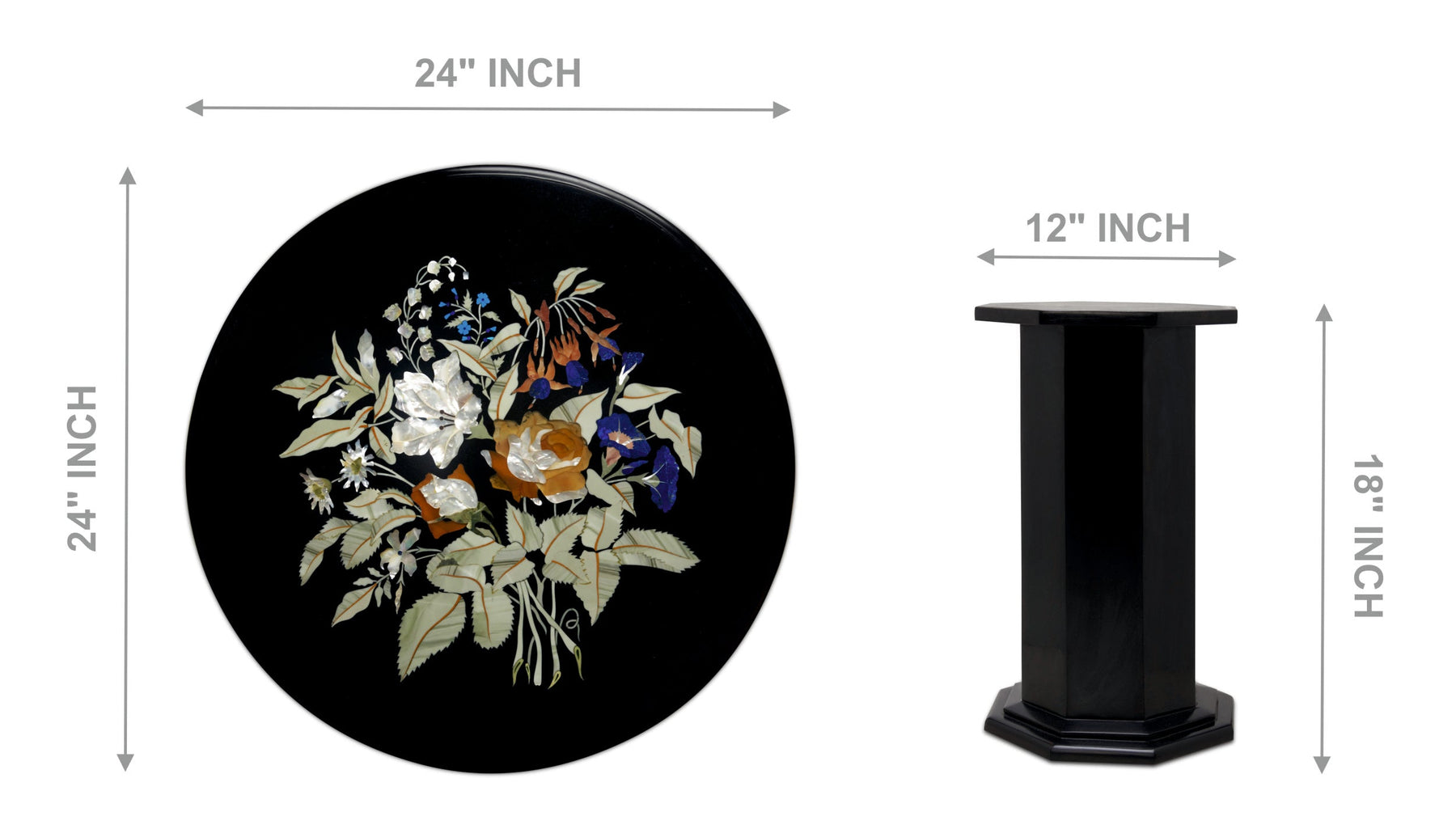 Material: Natural black marble with semi-precious stone inlay