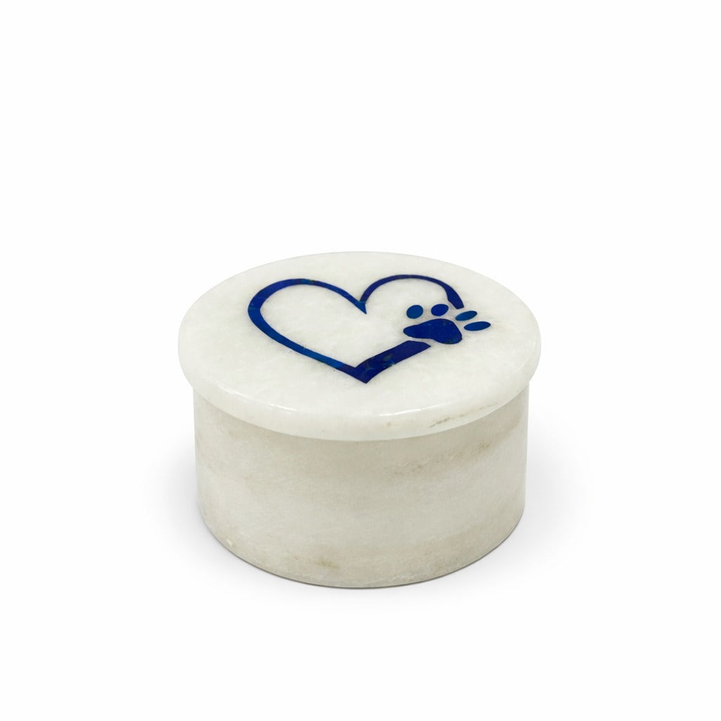 Celebrate love with this handcrafted white marble ring holder, delicately inlaid with a heart motif using natural Lapis Lazuli stone. Designed for Valentine’s gifting and everyday elegance, this compact marble box blends emotional symbolism with fine craftsmanship. Each piece is hand-carved from solid white marble, then carefully polished to a smooth finish. The lift-off lid reveals a secure space for rings, earrings, or small keepsakes—making it ideal for proposals, anniversaries, or meaningful personal storage. Minimal in size yet rich in detail, this marble jewelry box adds a refined accent to bedside tables, vanities, and gifting moments.