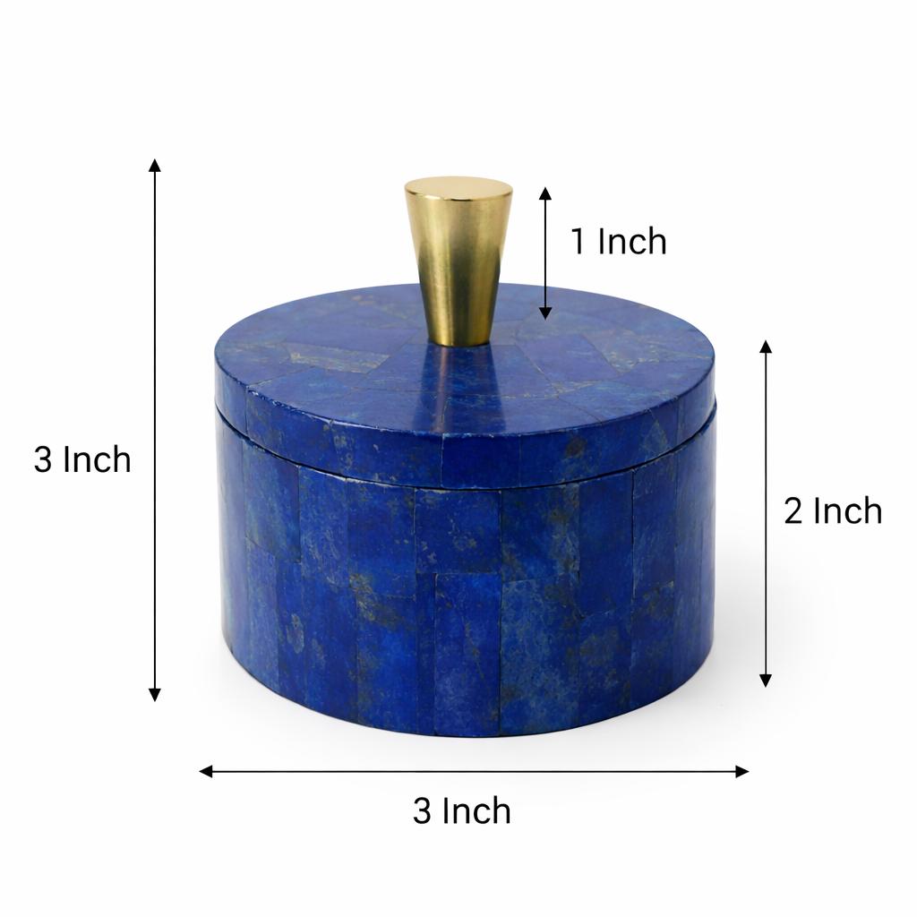 Blue lapis jewelry box dimensions 3 inch width 3 inch height with brass knob