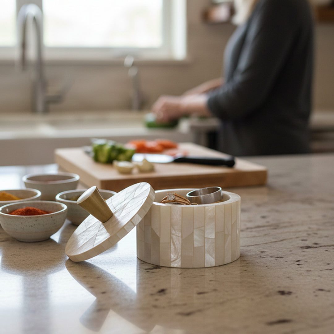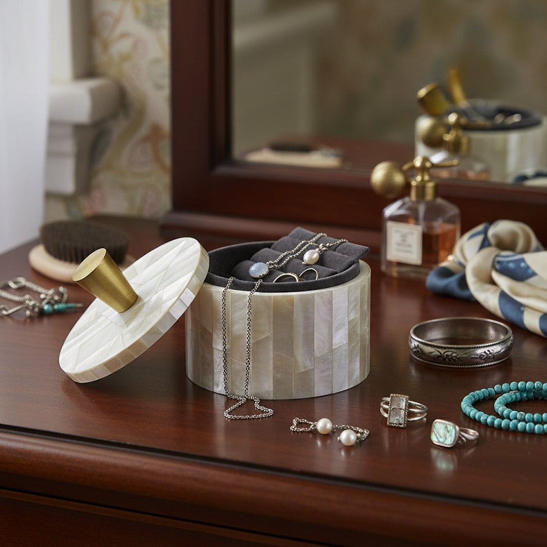 Designed to be compact yet substantial, it serves as both a functional organizer and a sculptural décor accent—perfect for everyday jewelry, keepsakes, or personal valuables.