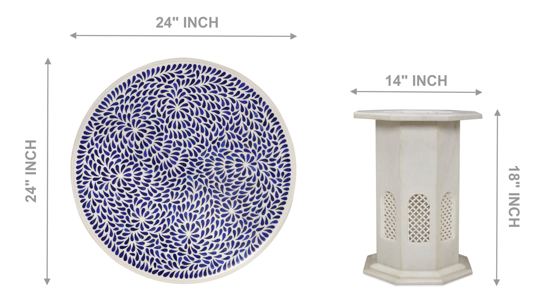 Material: Natural White Marble, Lapis Lazuli Semiprecious Stone Inlay