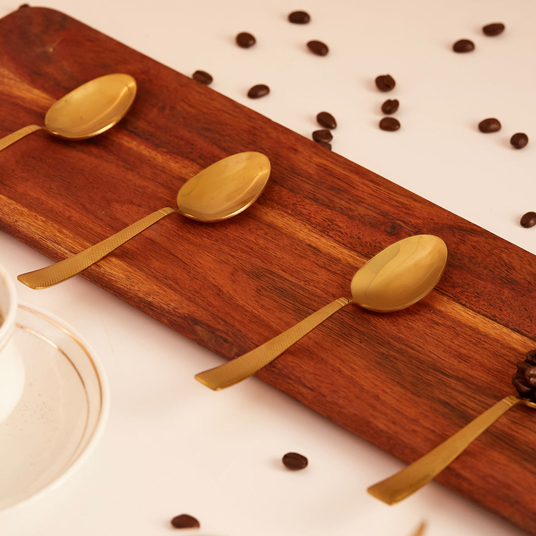 Bring café-level elegance to your table with this Gold Stainless Steel Espresso Spoon Set, designed for those who appreciate refined details. With a softly engraved handle and a rich gold finish, these spoons balance modern luxury with everyday usability—perfect for coffee rituals, desserts, and elegant entertaining.