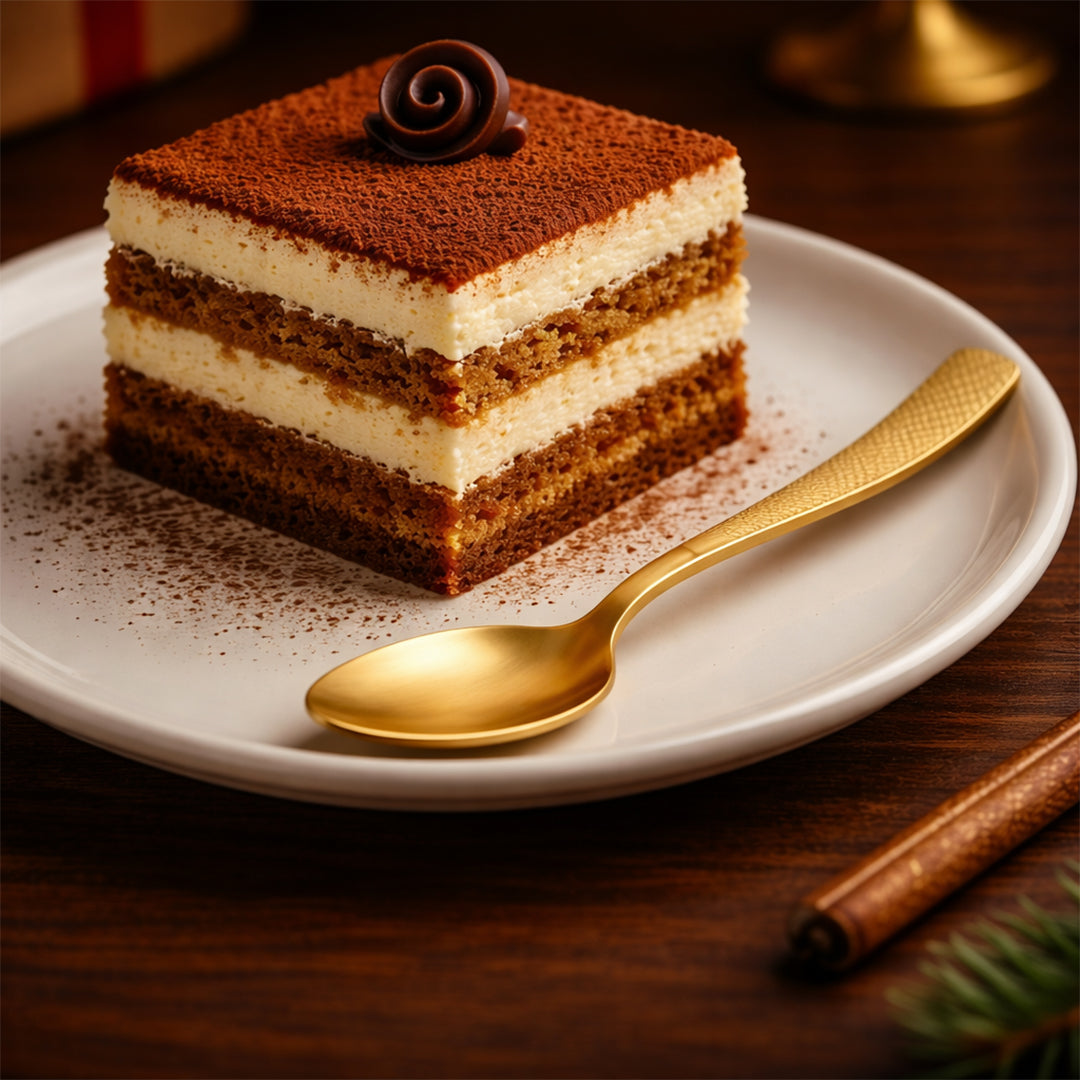 Elegant Gold Finish: A warm, polished gold tone that elevates espresso, desserts, and table settings.