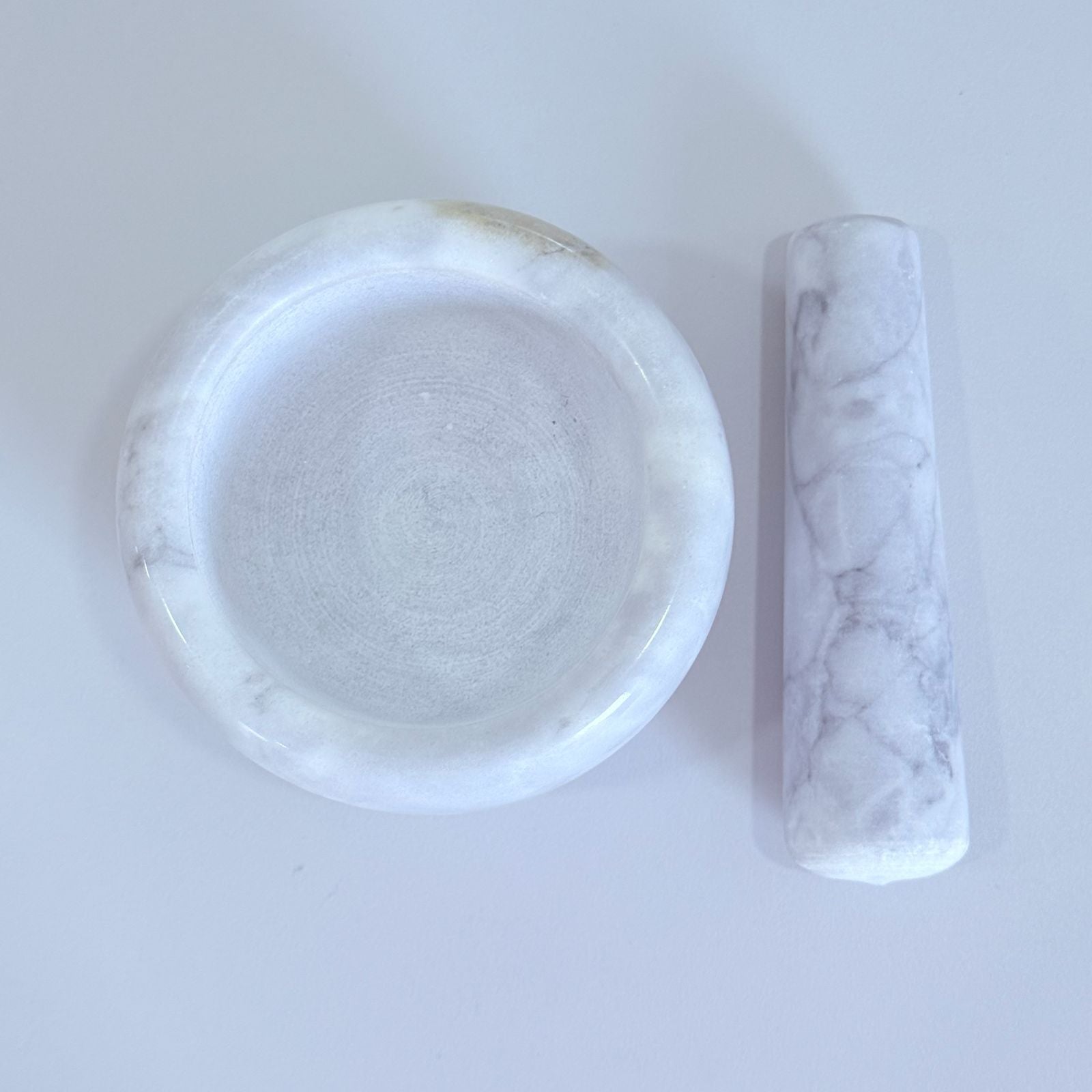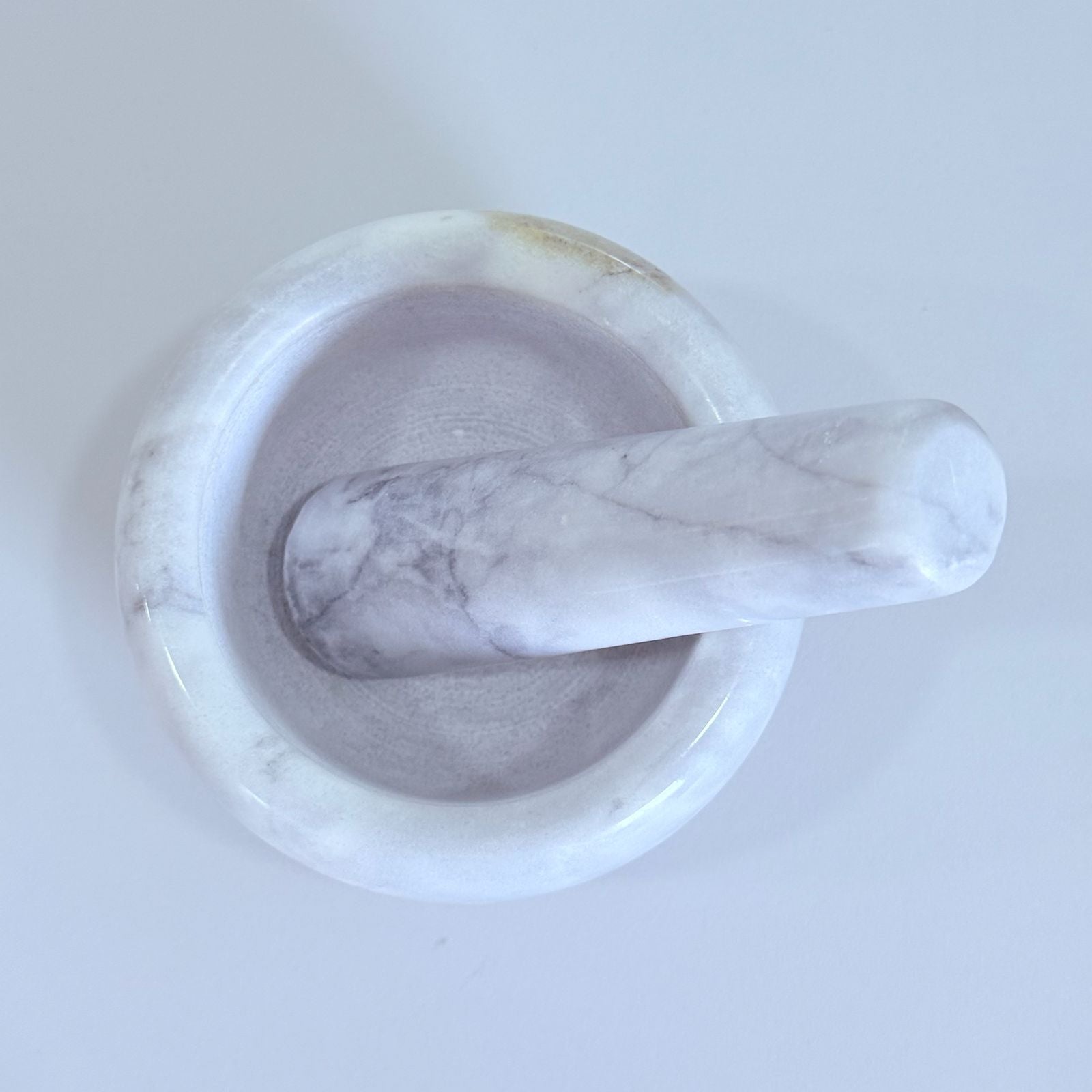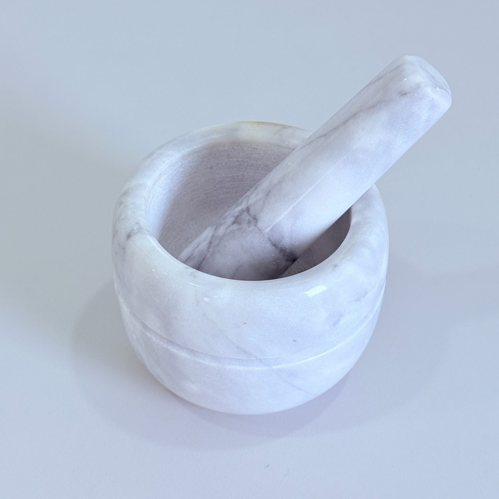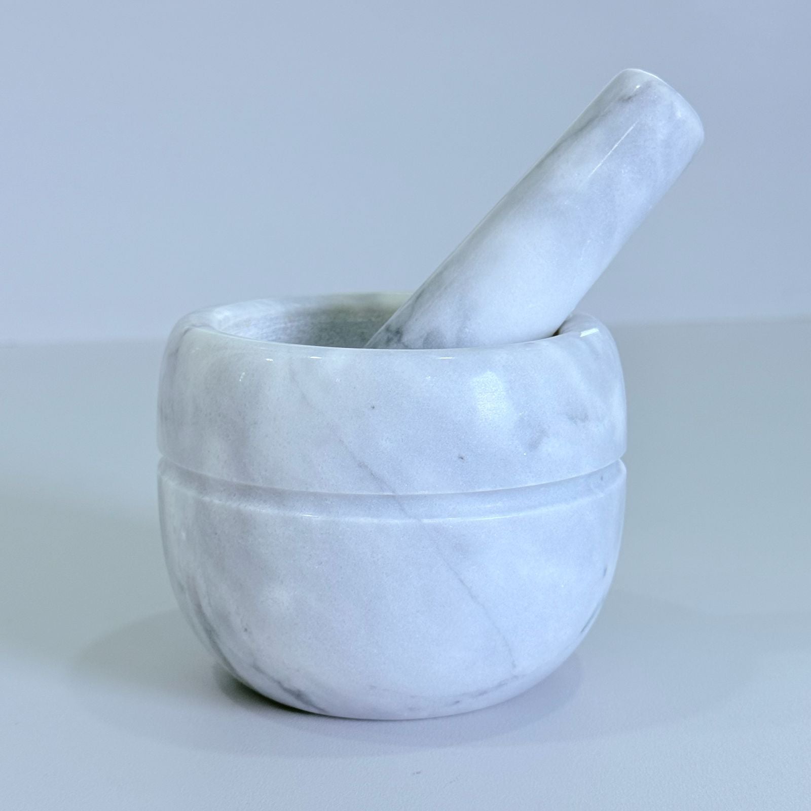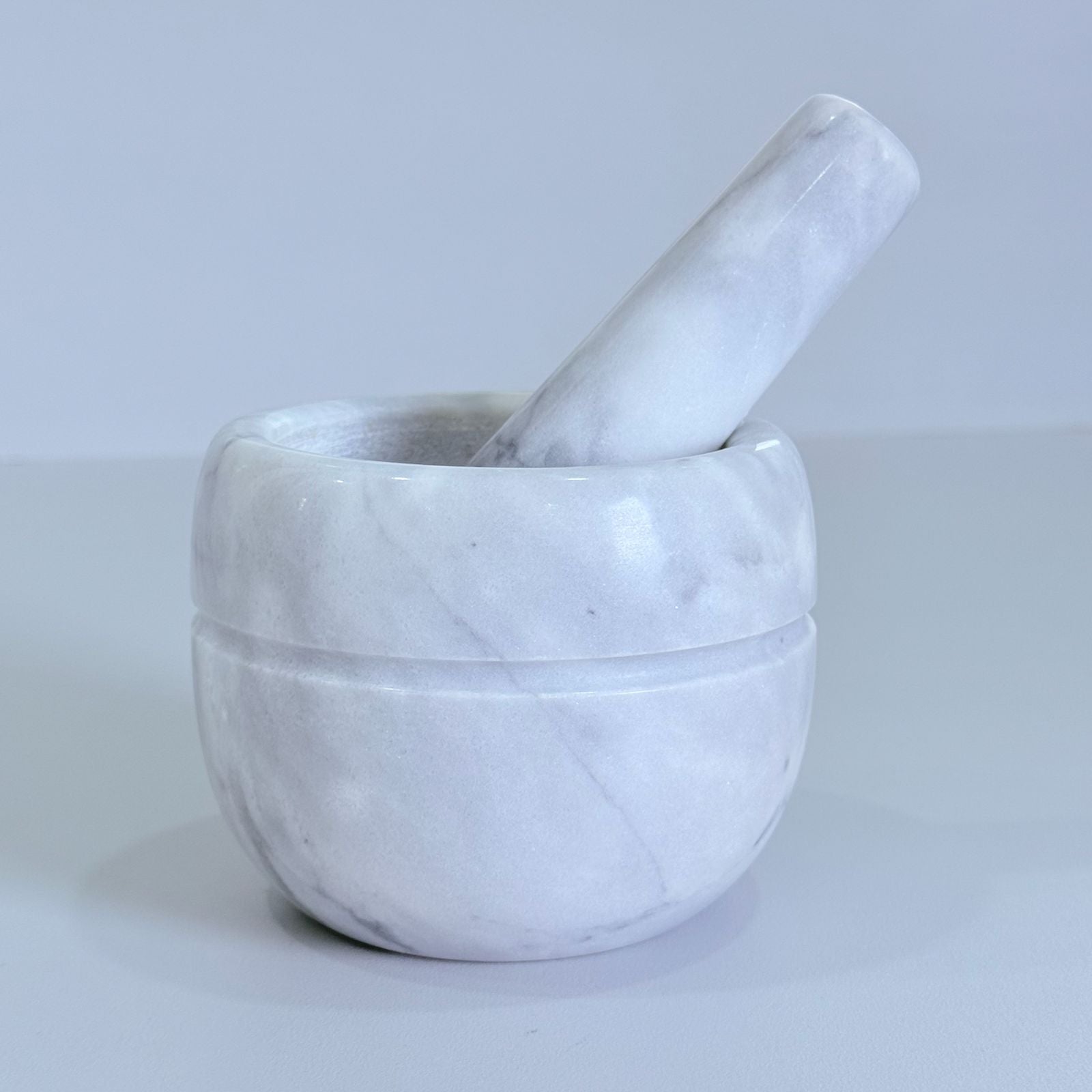 Grey Marble Mortar and Pestle Set – handcrafted from solid natural marble, designed for grinding herbs, spices, and pastes with ease and stability. The heavyweight design ensures the mortar stays steady while the smooth pestle provides a comfortable grip for effortless use. Perfect for both functional kitchen tasks and as a stylish decorative accessory.