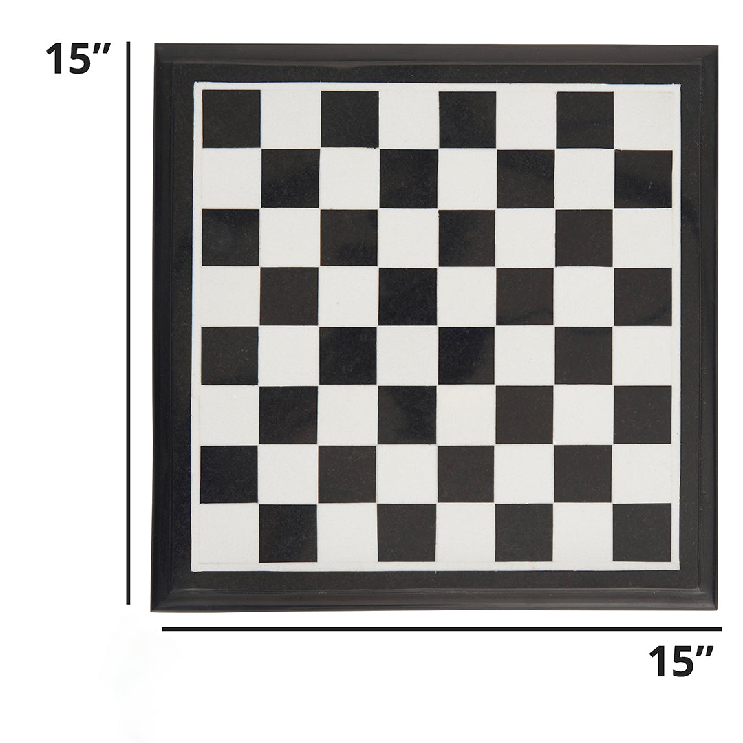 Elevate the classic game of chess with this handcrafted black marble chess board, created by skilled artisans using traditional stone craftsmanship techniques. Each board is carved from natural black marble and finished with precisely inlaid white marble squares, resulting in a bold contrast and refined visual balance. Designed as both a functional chess surface and a statement décor piece, this board blends heritage craftsmanship with modern luxury aesthetics. Whether placed in a study, living room, office, or library, it adds depth, character, and quiet sophistication to the space. Available in three size options—12”, 15”, and 18”, this chess board is ideal for casual play, professional use, or decorative display.