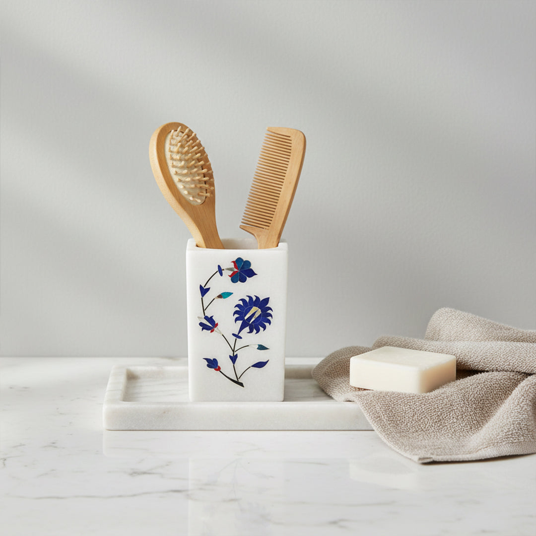 Each piece is individually handcrafted by skilled artisans using traditional Mughal-era stone inlay techniques, making every holder uniquely elegant.