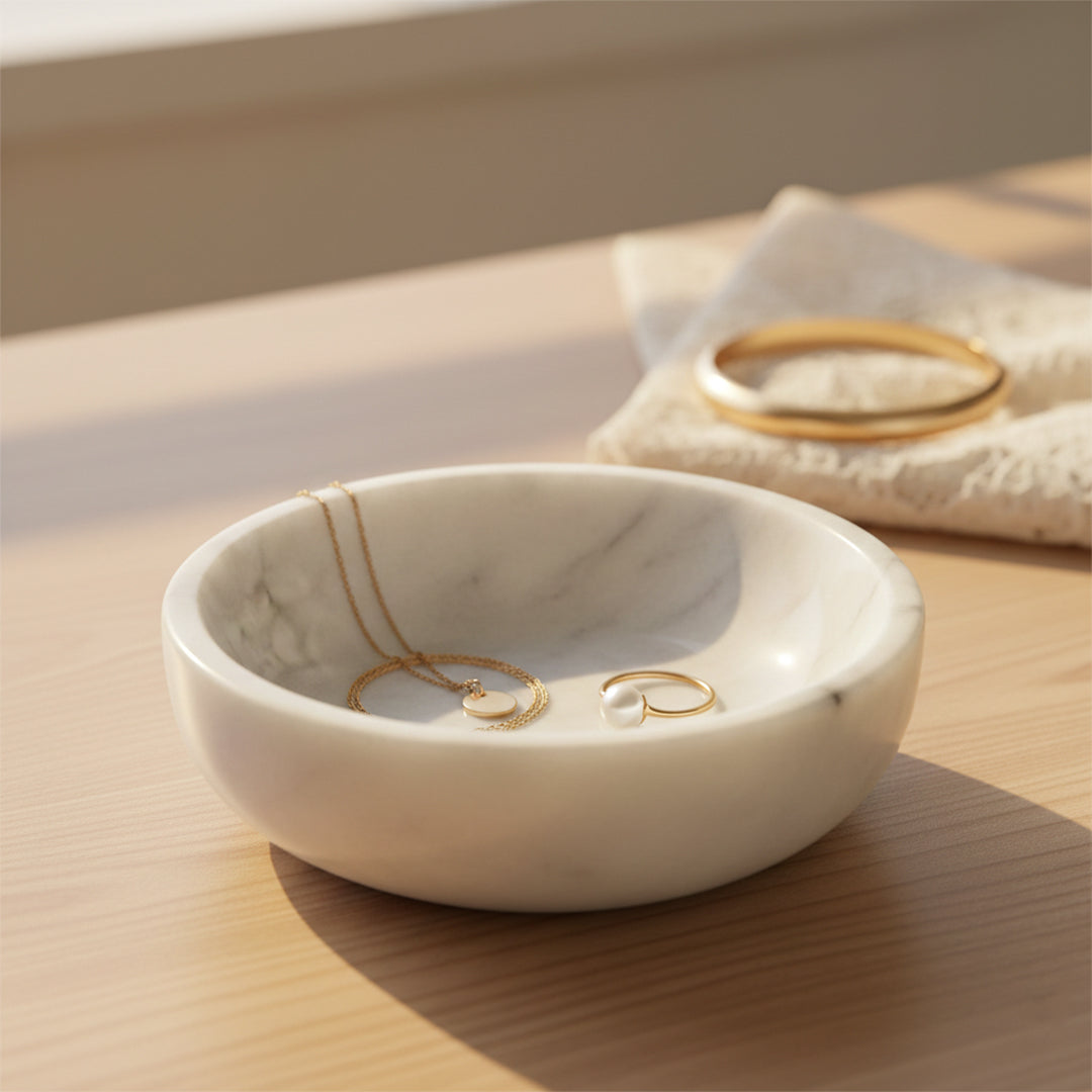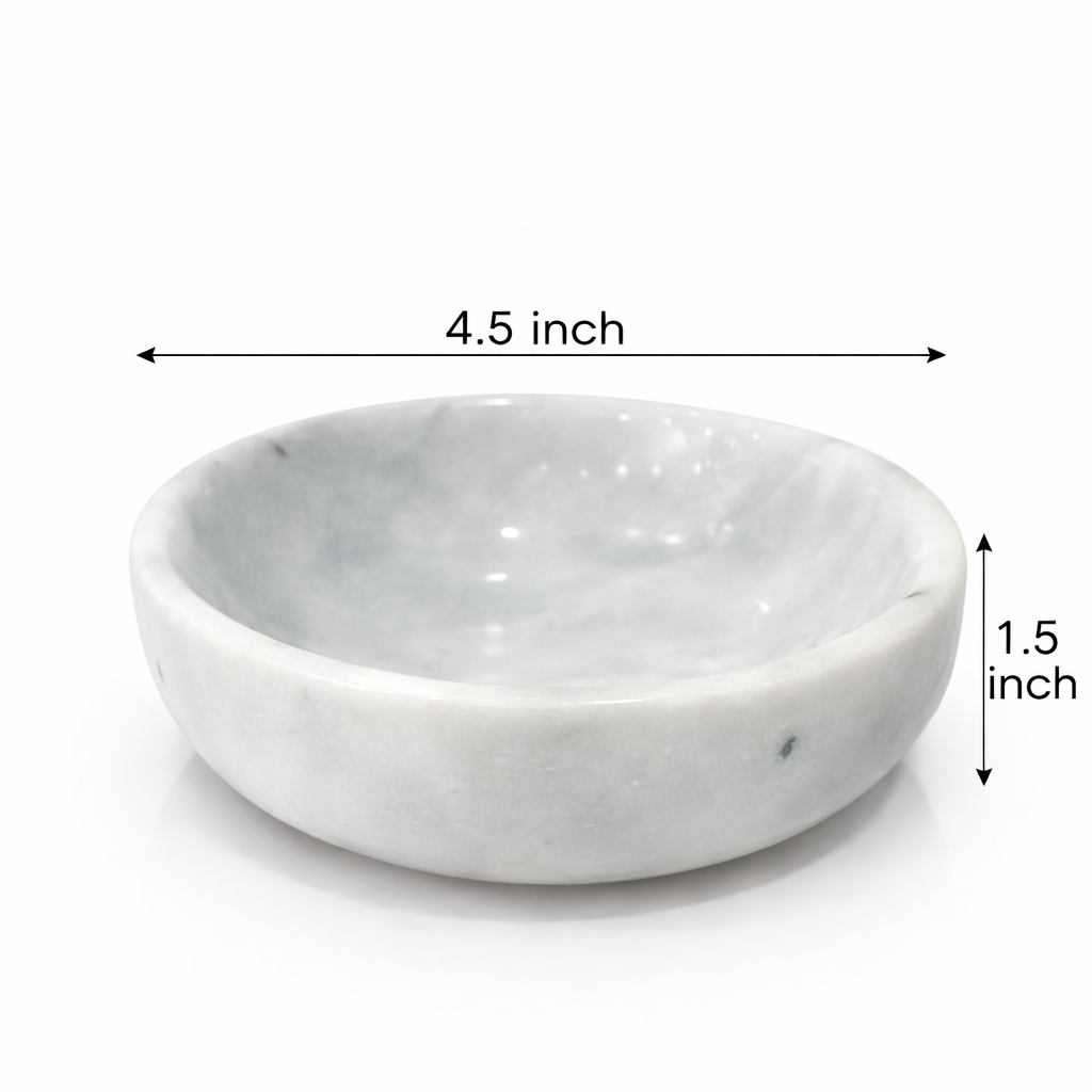 Handcrafted White Marble Bowl – 4.5” Decorative Jewelry & Trinket Dish
