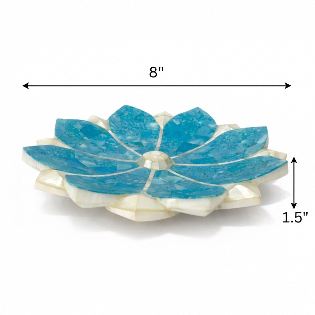 Material: Marble bowl overlaid with semi-precious stone (Turquoise + Mother of Pearl)