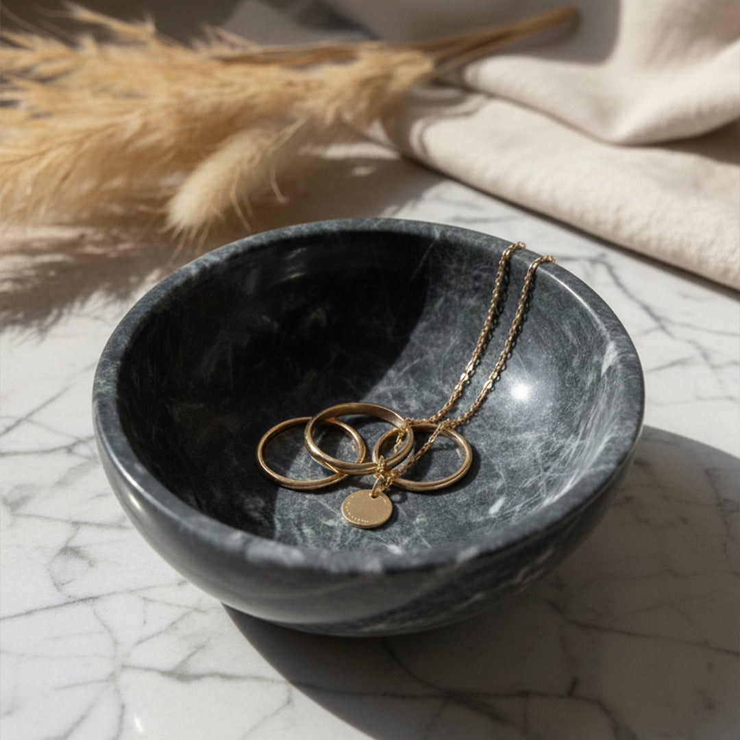 Luxury Black Marble Bowl – Hand Polished Decorative Jewelry & Trinket Dish (4.5 Inch)