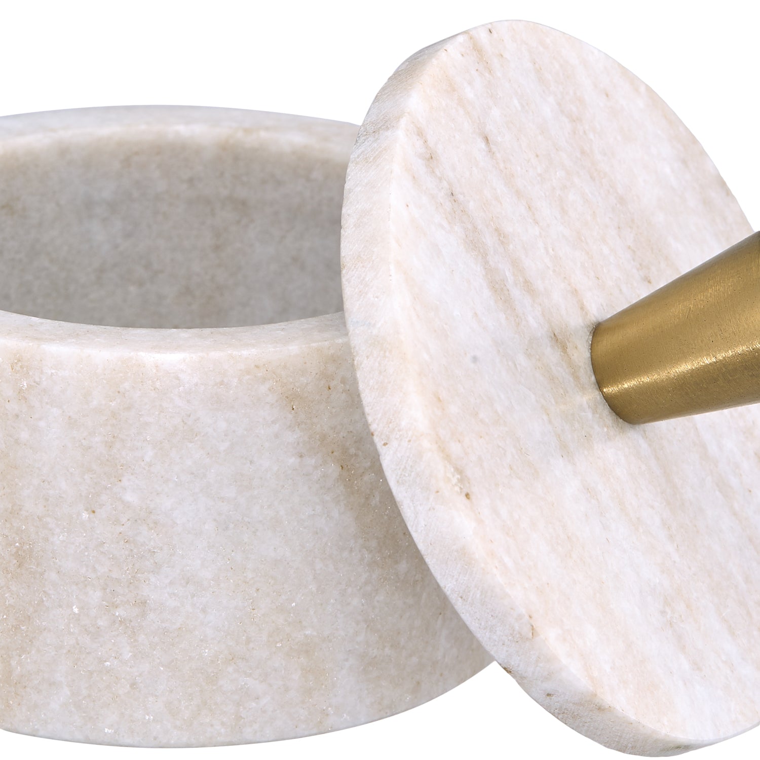 Brown Marble Salt Cellar with Lid and Brass Knob – handcrafted from premium Makrana marble, designed to store gourmet salts, spices, herbs, and condiments in style. The smooth natural marble not only enhances your kitchen décor but also offers nonstick properties for easy cleaning. With its compact design and brass knob lid, this salt cellar keeps contents fresh and adds a luxurious touch to your dining table or kitchen.