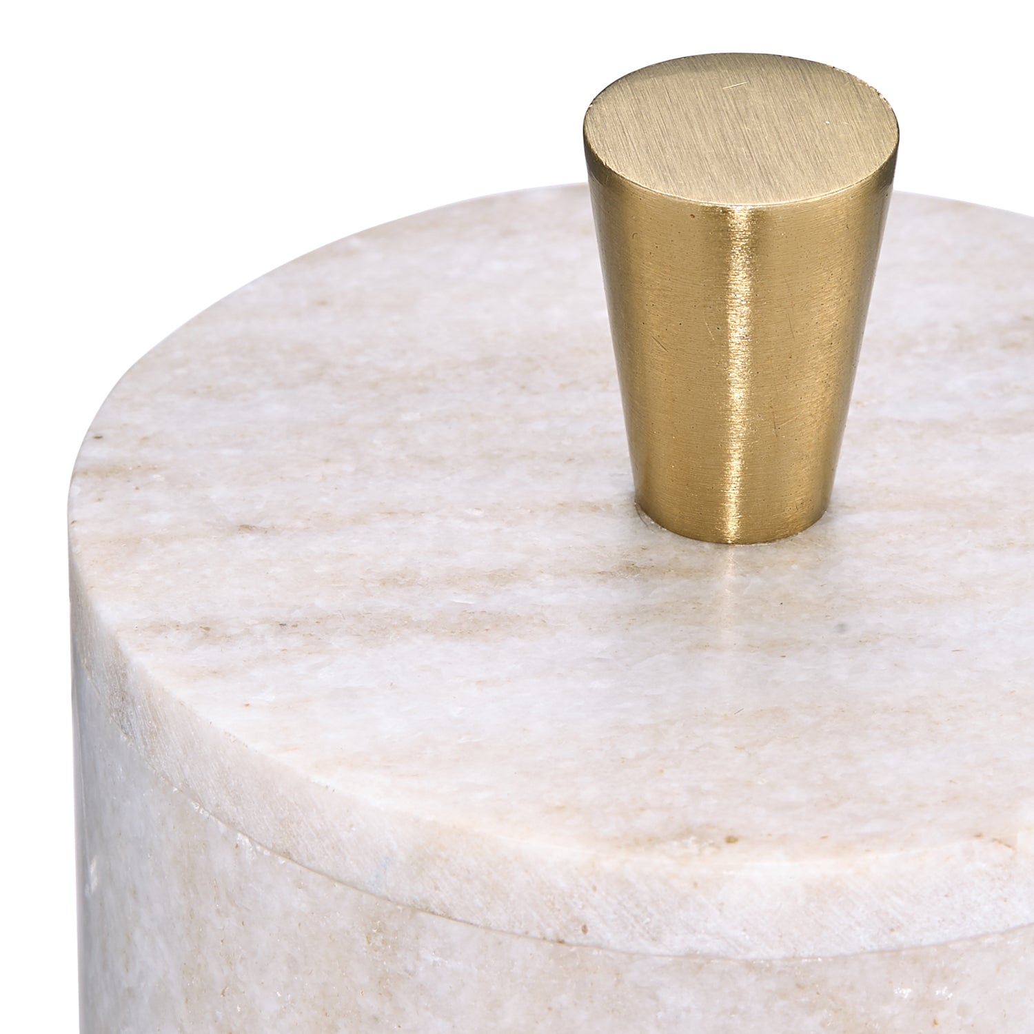 Brown Marble Salt Cellar with Lid and Brass Knob, 3 Inch Box for Salt and Spices