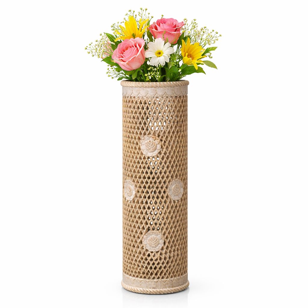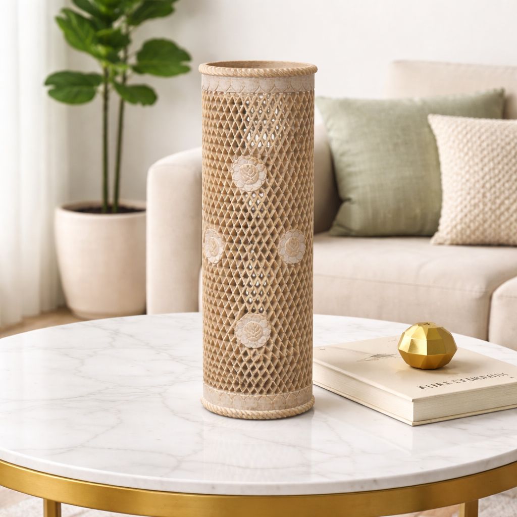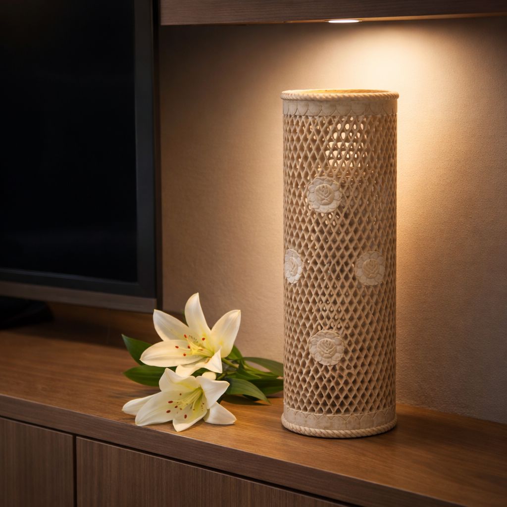 Cylindrical Vase for Centre Table | Elegant Soapstone Lattice 12-inch Artisan Floral Stone Decor & Housewarming Gift