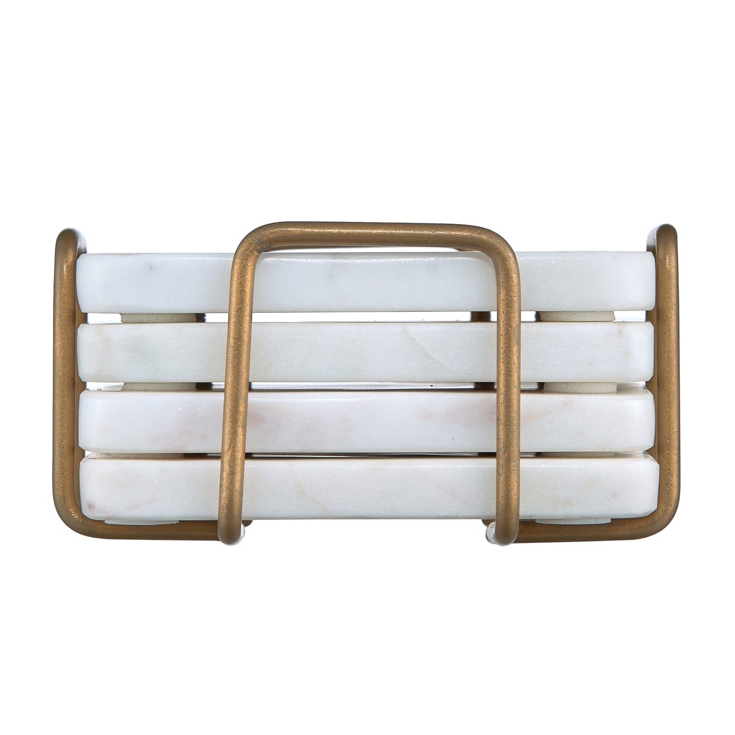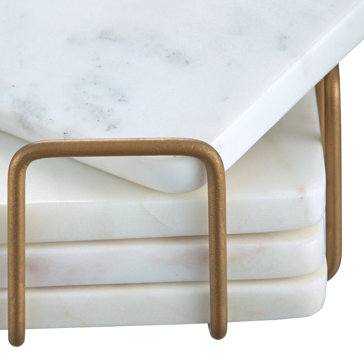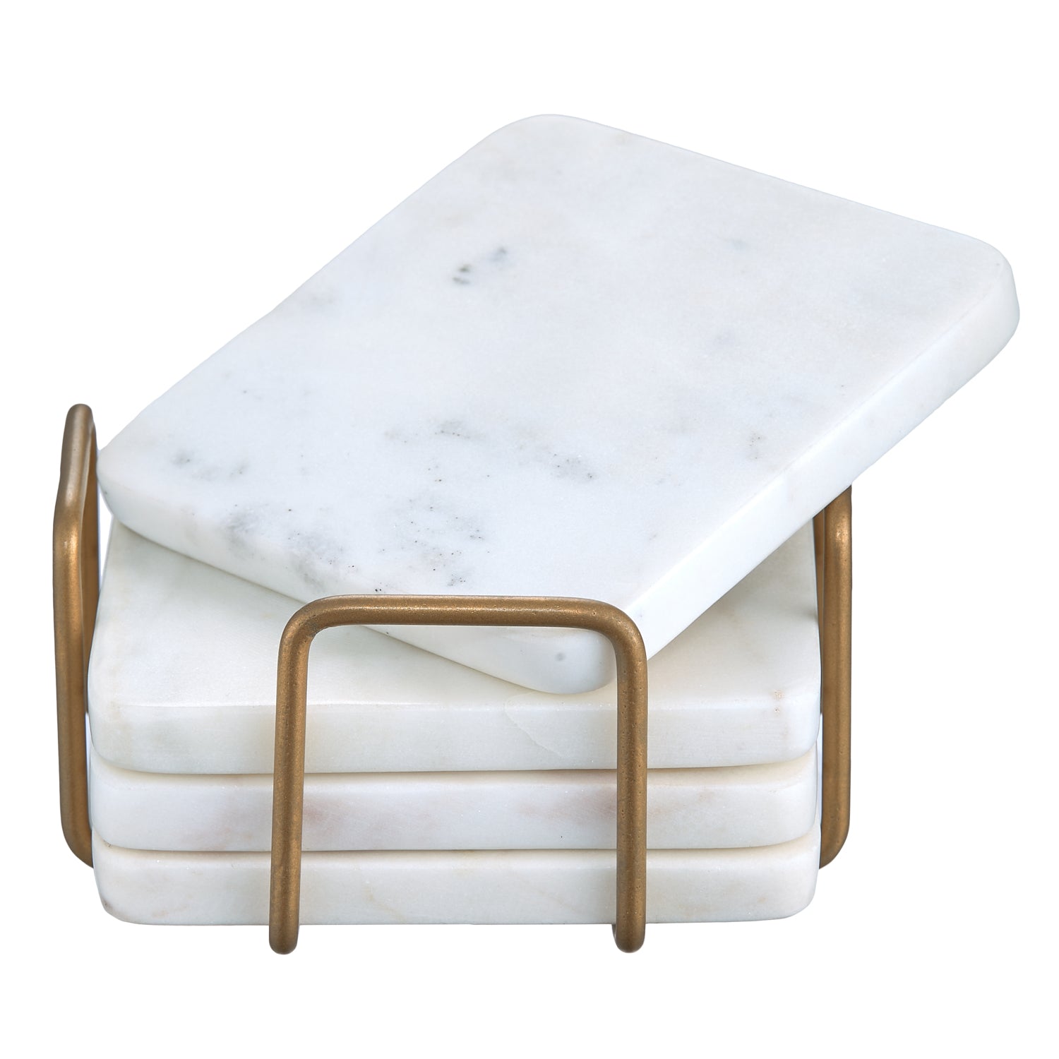 White Marble Coaster Set with Carnelian Gemstone Inlay Floral Art, Coasters for Coffee Table and Living Room